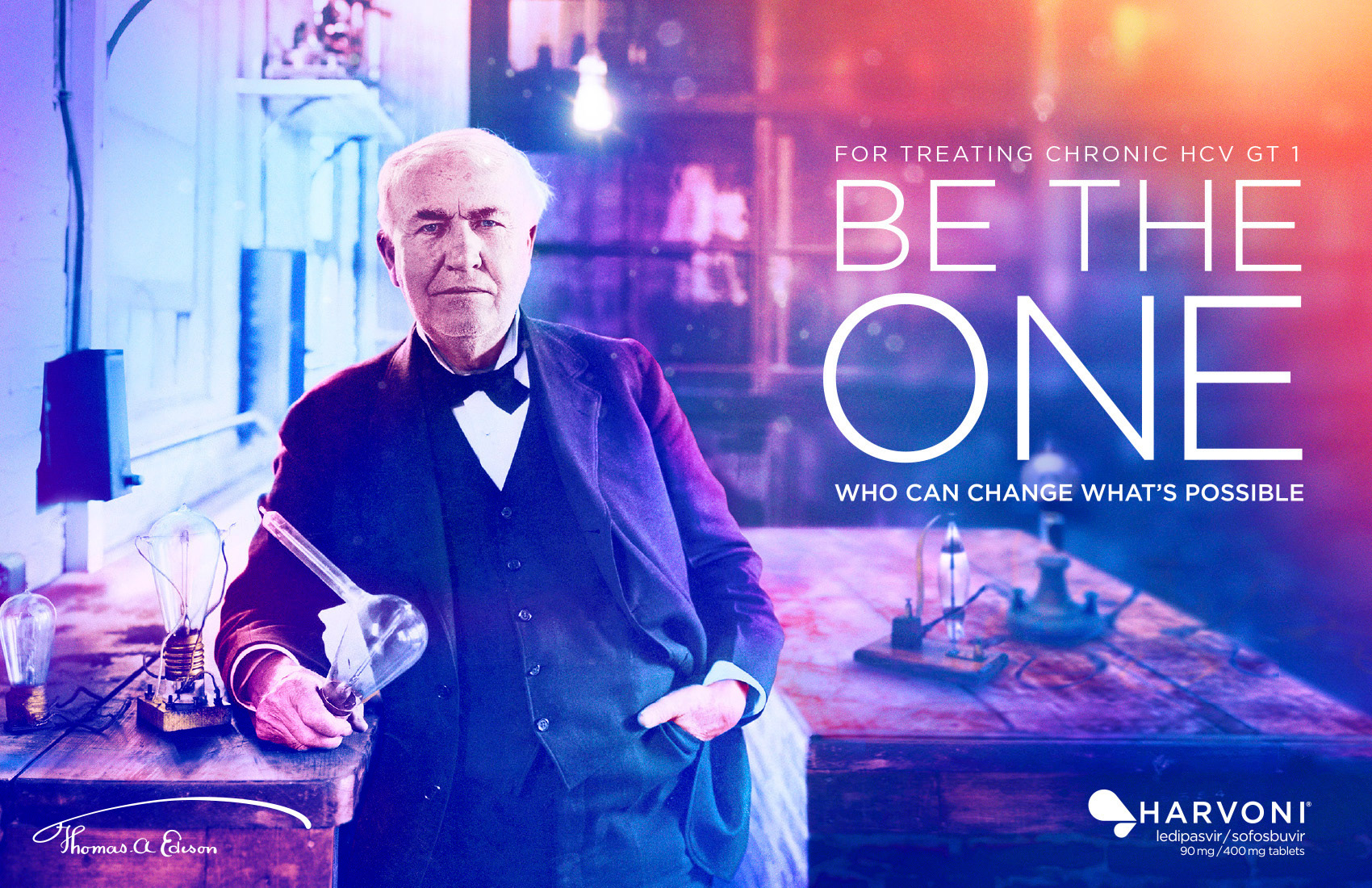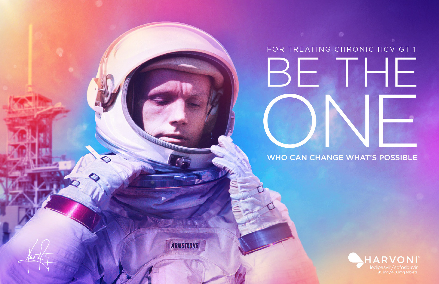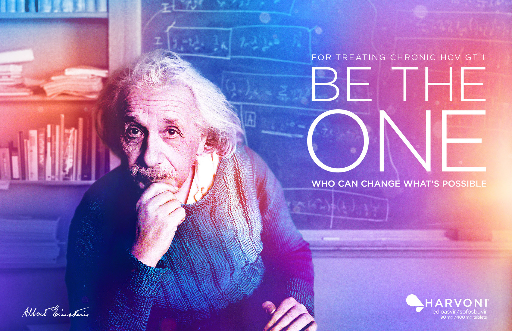 This Harvoni-as-hero campaign was seen by doctors all over the world and combined standout images of the most influential pioneers of the 20th century with a powerful call to action. "Be the One"–with its dual reference to "one" pill a day–distinguishes Harvoni from all others in the Hep C treatment landscape.