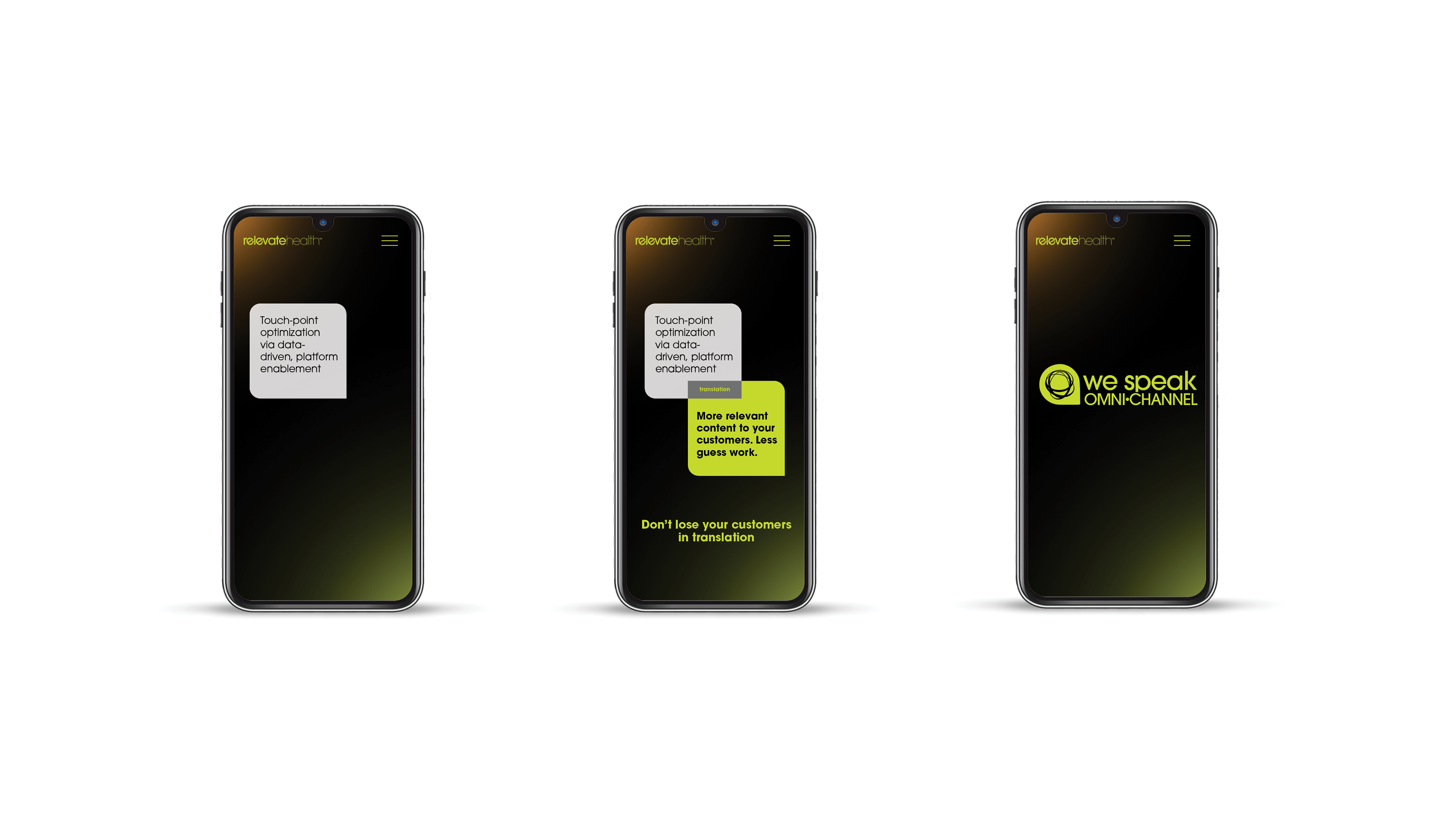 This campaign was created to help Relevate promote that they have omni-channel know-how and that they speak "omni-channel". I created an identity that shows that they translate marketing jargon into clear, concise language for their clients.